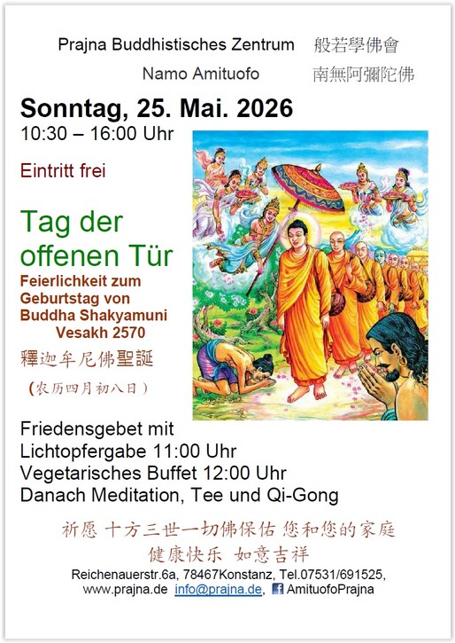 Interessierte sind herzlich zur Teilnahme eingeladen. außer bei folgenden Tagen** ** Gedenktage Feierlichkeiten zu Ehren der Buddhas und Bodhisattvas ** Chinesich Neujahr ** Vesakh Fest (Buddha Geburtstag) |
